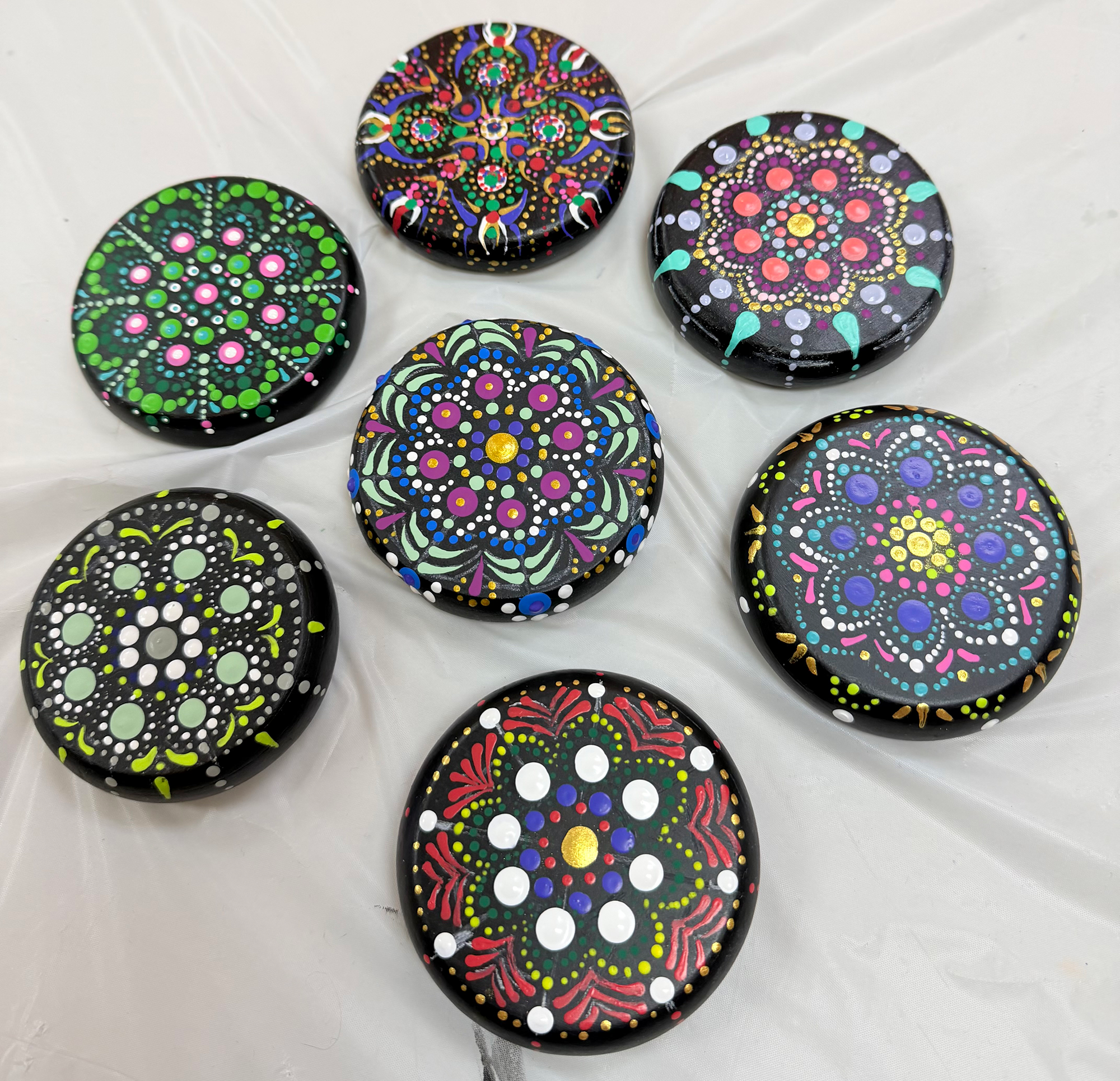 Join us for a relaxing Dot Mandala on Rock painting session where simple dots come together to form calming, intricate mandala patterns on natural stones.