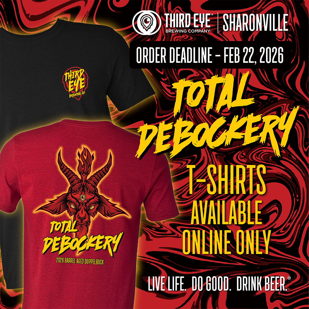 LAST DAY TO ORDER IS FEB 22, 2026. SHIRTS WILL BE AVAILABLE FOR PICKUP ON FEB 28, 2026 AT OUR SHARONVILLE TAPROOM. ALL ORDERS MUST BE PICKED UP BY MAR 8, 2026. NO REFUNDS.